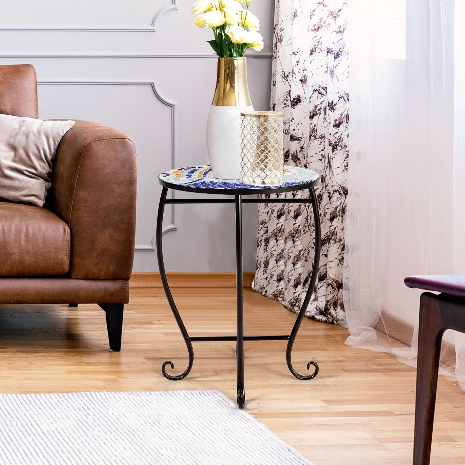 Outdoor Indoor Steel Accent Plant Stand Cobalt Table-Blue