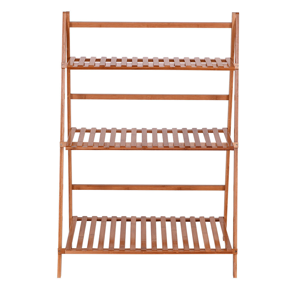 3 Tiers Outdoor Stand Bamboo Flower Pot Shelf