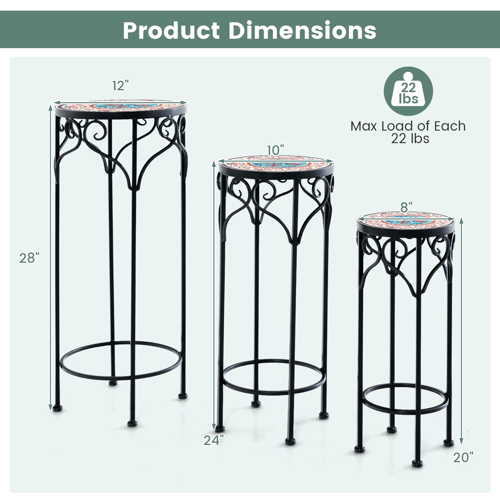 Elegant Plant Stand in 3 Sizes: The mosaic plant stand comes with 3 sizes: (Large) 12"x28" (Medium) 10"x23.5" (Small) 8"x19.5" offering various placement options. And exquisite decorative patterns on the top will make it an attention-grabbing focal point.