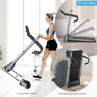 Folding Design: Folding design and compact size is perfect for home-usage. Equipped with 2 transportation wheels the running machine is portable and can be moved anywhere effortlessly.