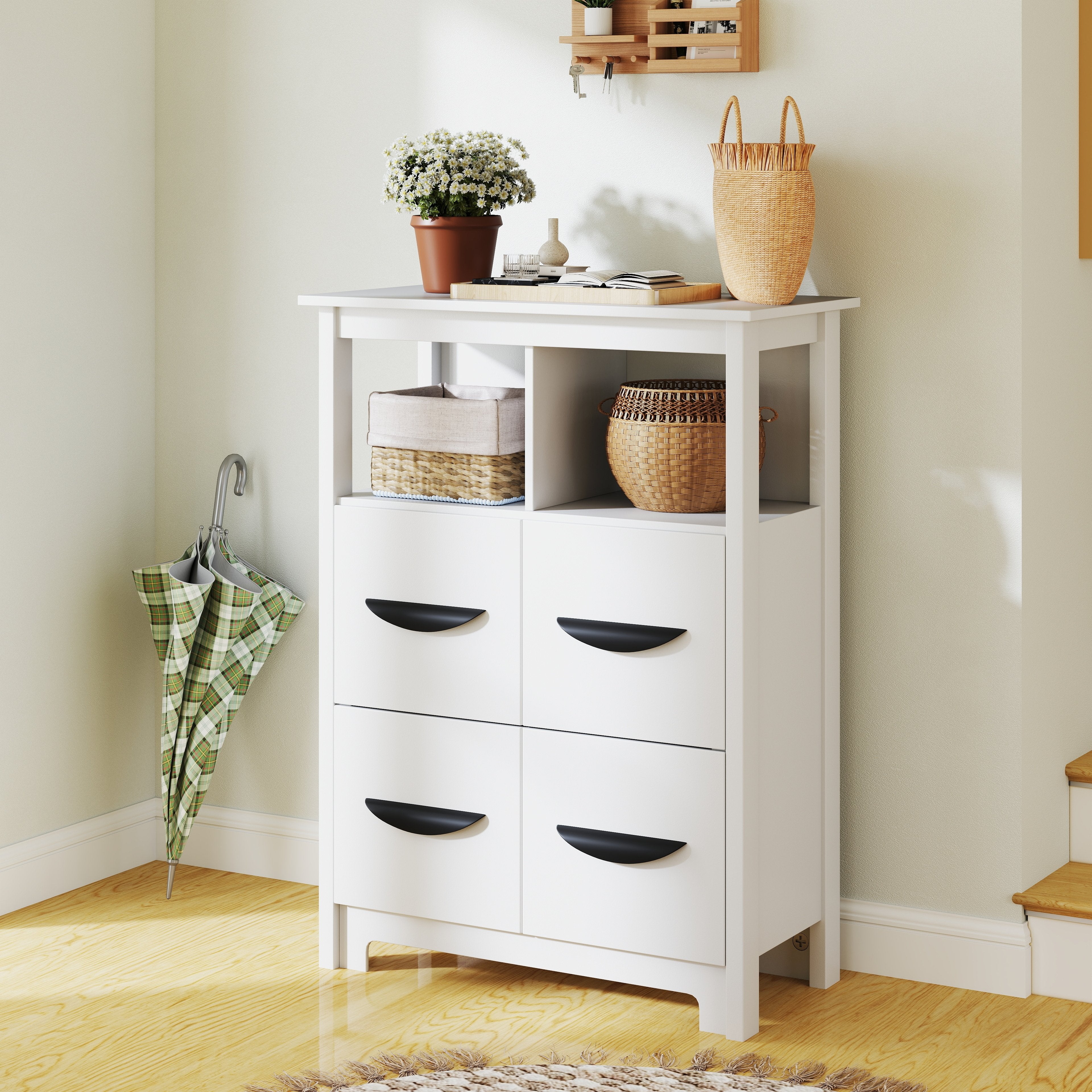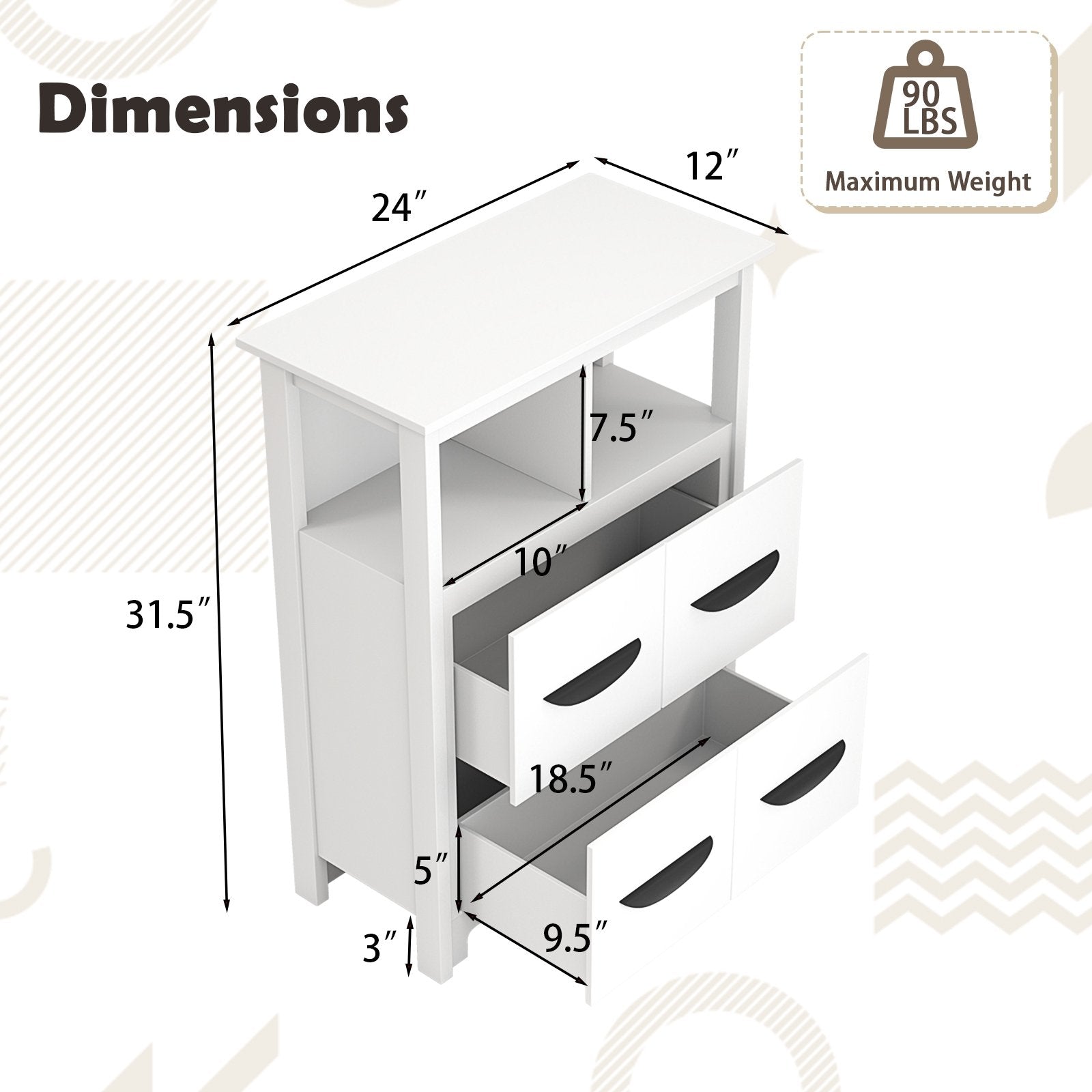24 Inch Floor Cabinet with 2 Open Compartments and 2 Drawers-White