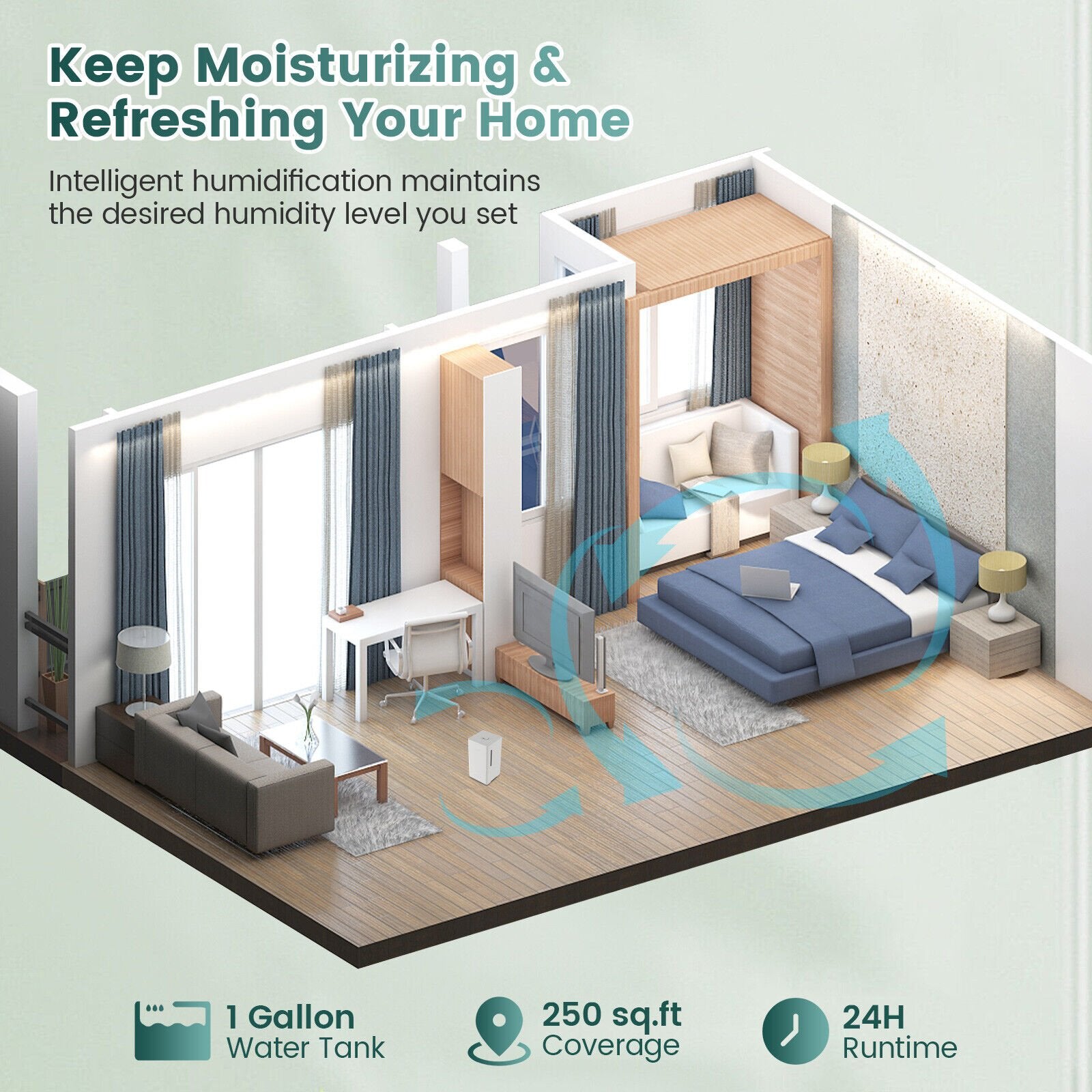 Wide Range of Application: This 4Lhumidifier is a perfect humidification solution for your bedroom living room nursery etc. It helps moisturize skin improve sleep mist plants and more. What's more with a compact and portable design this humidifier can be used anywhere you need.