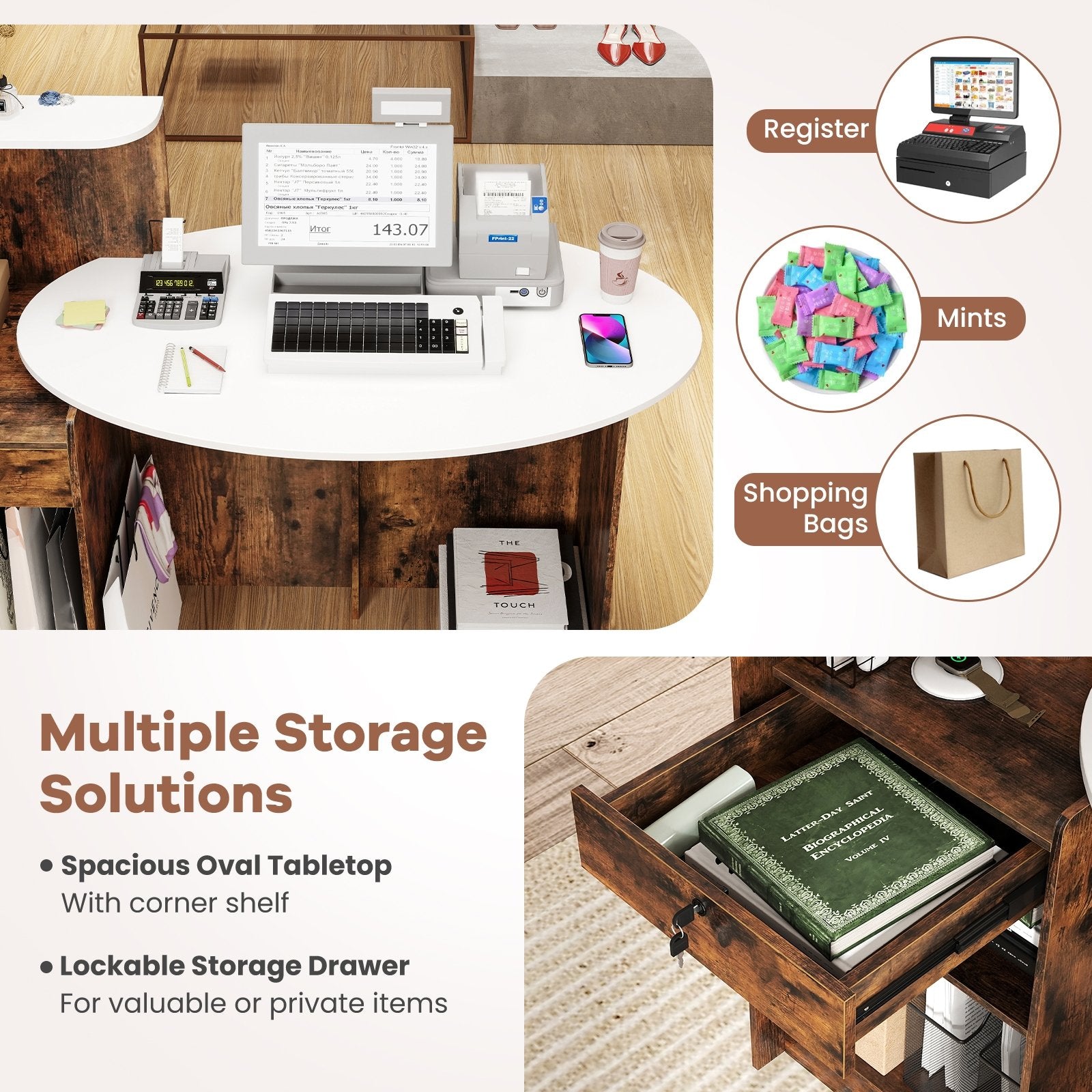 Modern Reception Desk Front Counter Desk with Oval Tabletop-Rustic Brown