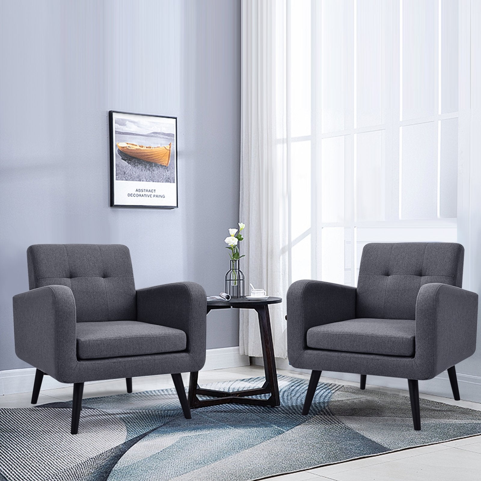 Modern Upholstered Comfy Accent Chair Single Sofa with Rubber Wood Legs-Gray