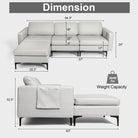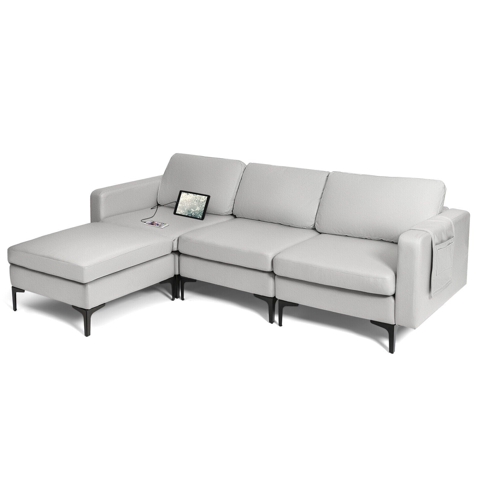Modular Modern L-shaped Sectional Sofa with Reversible Chaise and 2 USB Ports-Light Gray