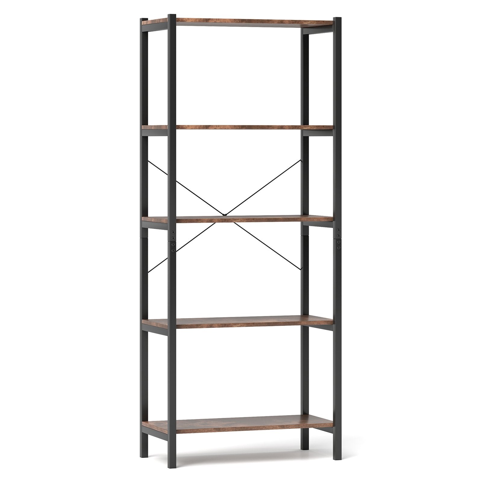 Striking Appearance: The shelves are classically designed with wood shelves and metal frames in sharp contrast. It can easily blend into your home style and add a unique view to your space.