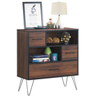 3-Tier Wood Storage Cabinet with Drawers and 4 Metal Legs
