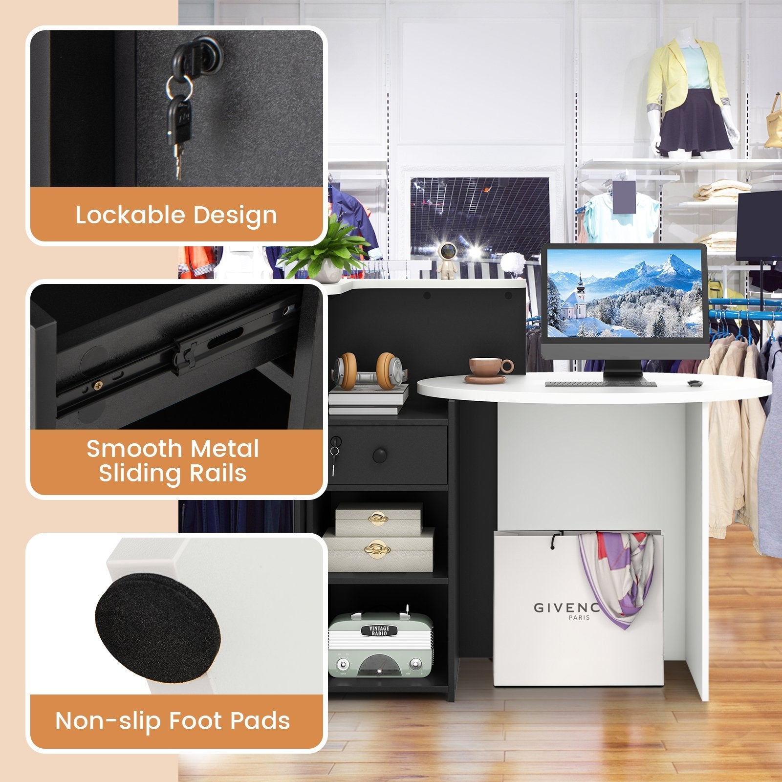 Reception Office Desk with Open Shelf and Lockable Drawer-Black