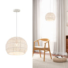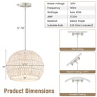 Round Farmhouse Rattan Pendant Lights with Adjustable Hanging Rope-Beige
