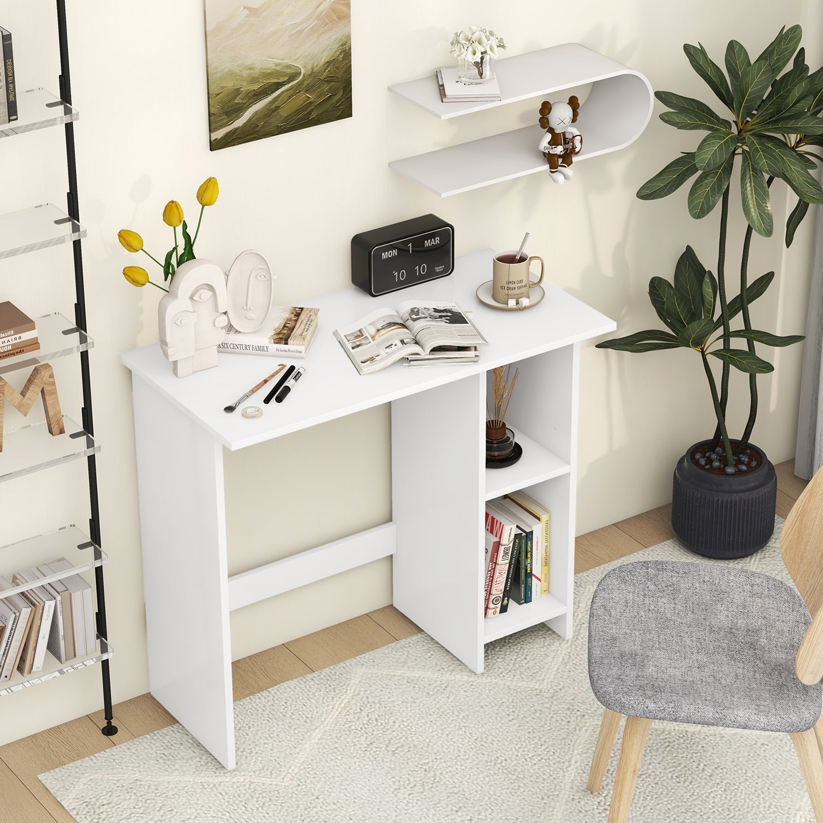 Small Computer Desk with Storage and Adjustable Shelf-White