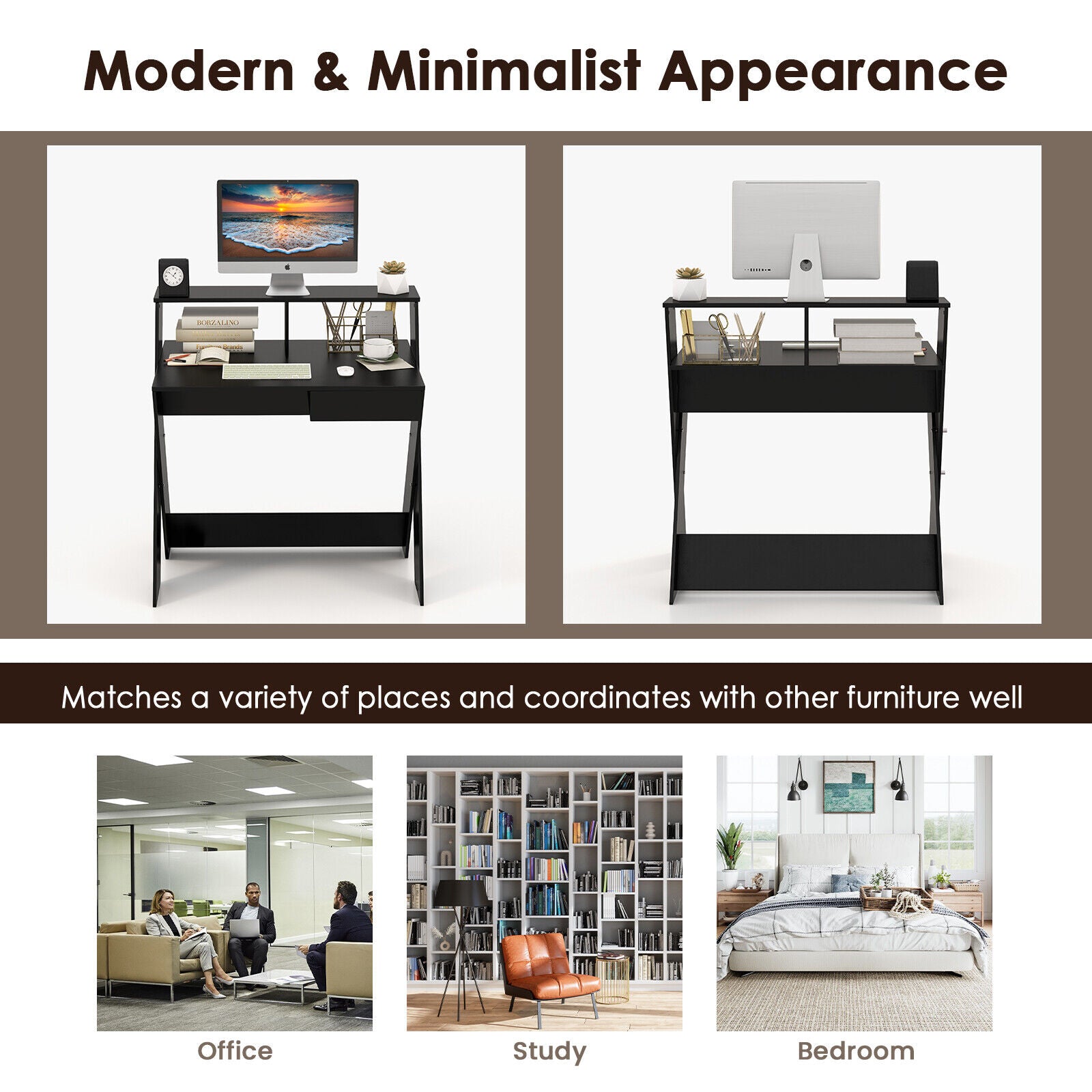 Spacious Working and Storage Space: The computer desk has a large tabletop that provides enough space for working and storage. Working essentials like the keyboard notebook and coffee can be placed on the tabletop for easy access. At the same time the pull-out drawer brings extra storage space for personal belongings.