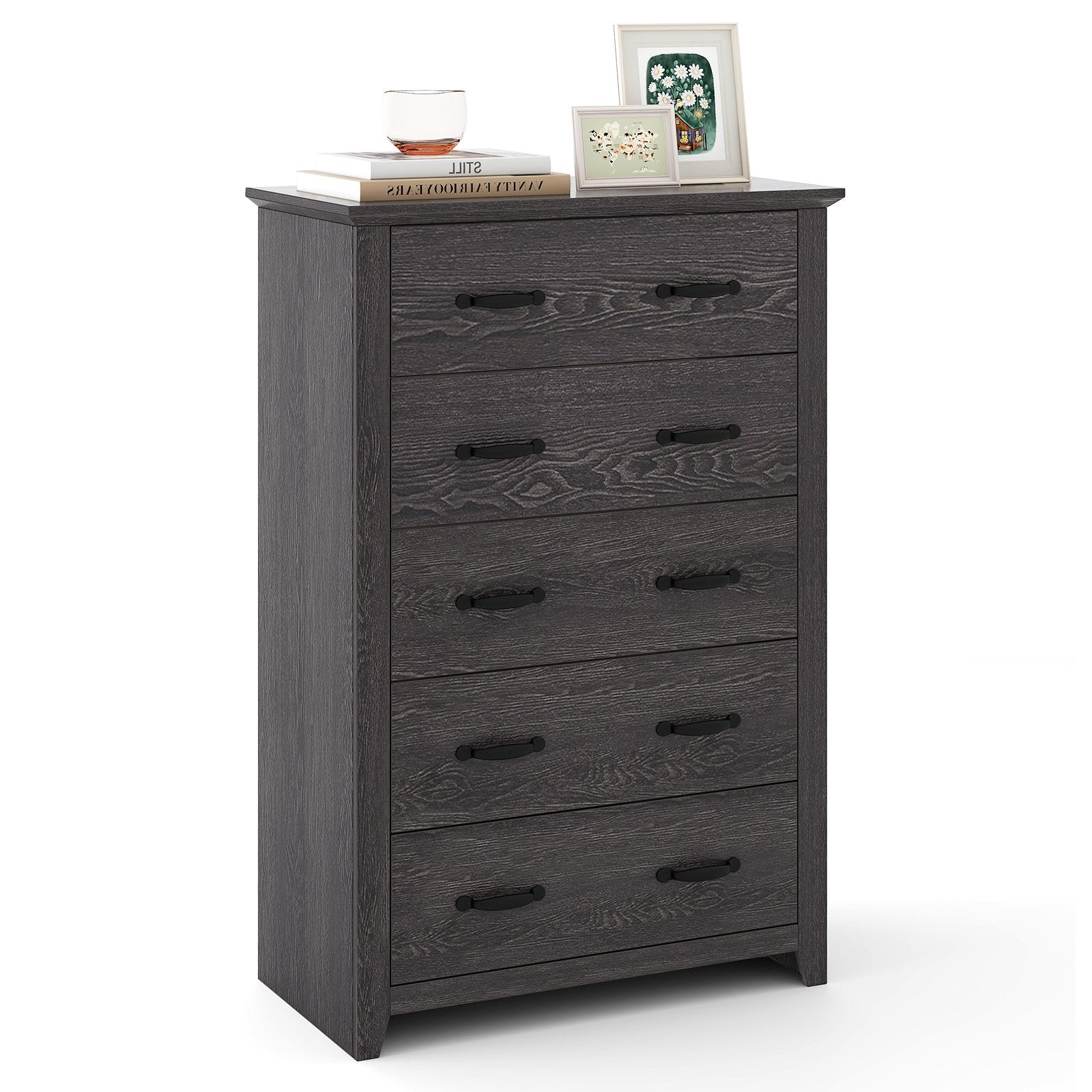 Tall Storage Dresser with 5 Pull-out Drawers for Bedroom Living Room-Gray
