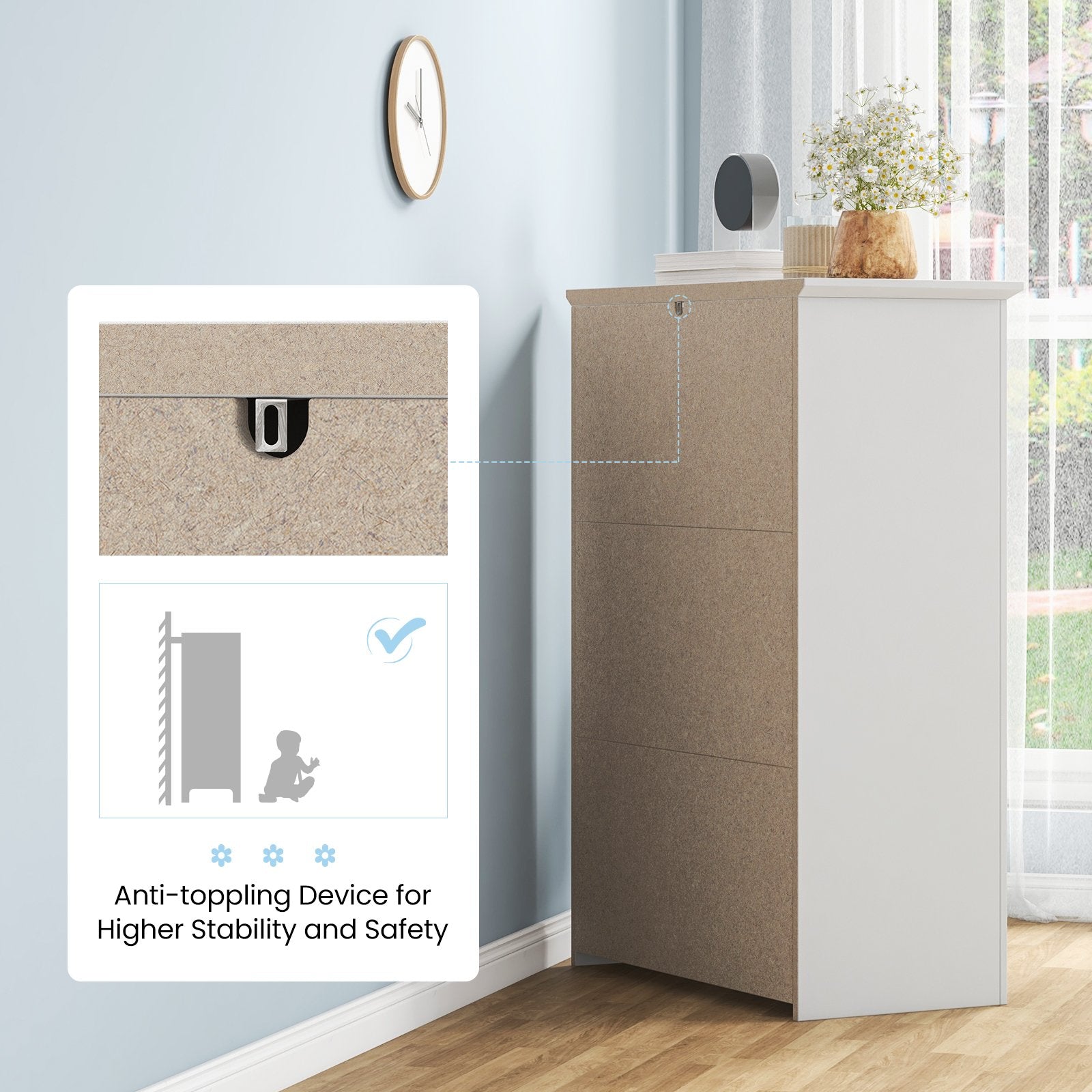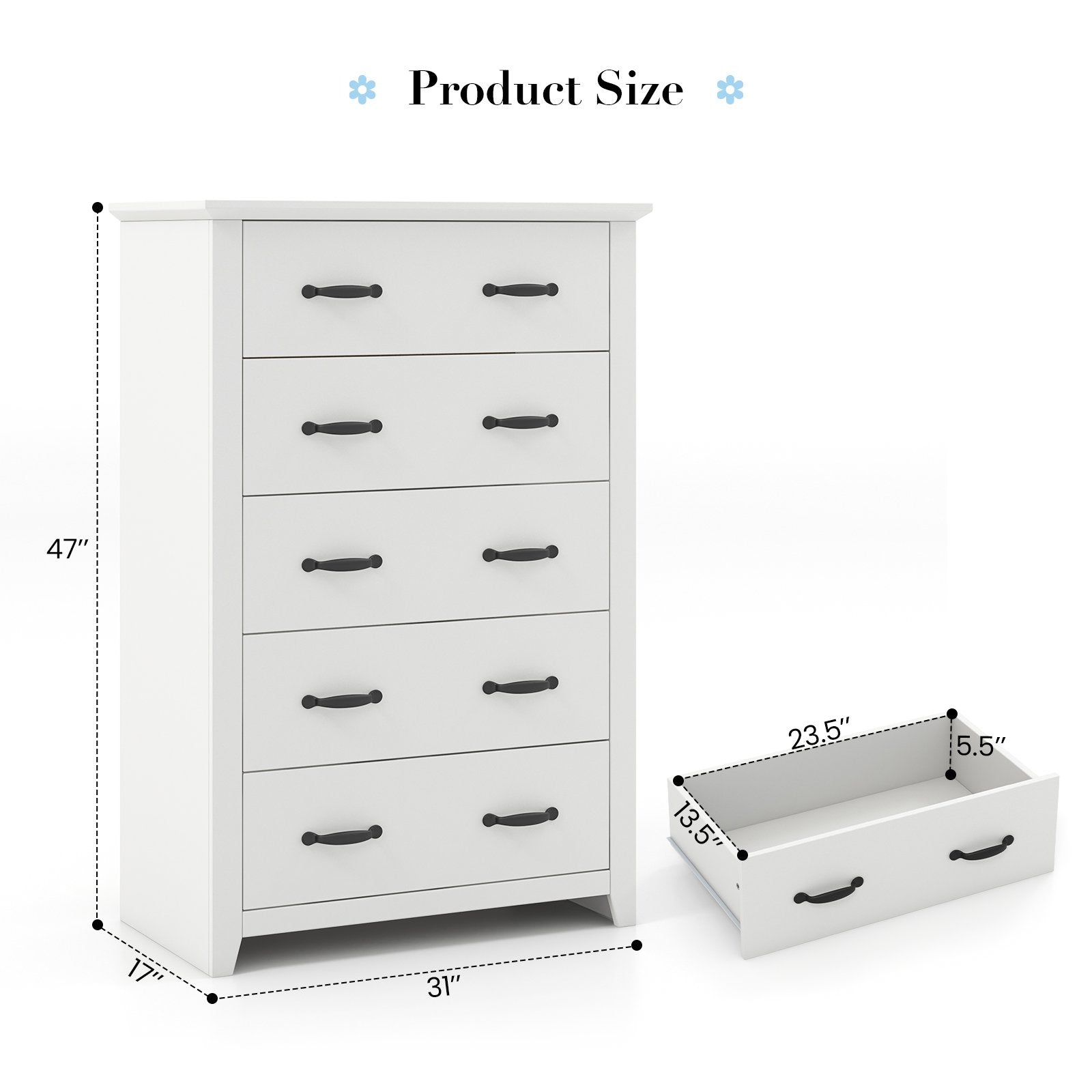 Tall Storage Dresser with 5 Pull-out Drawers for Bedroom Living Room-White