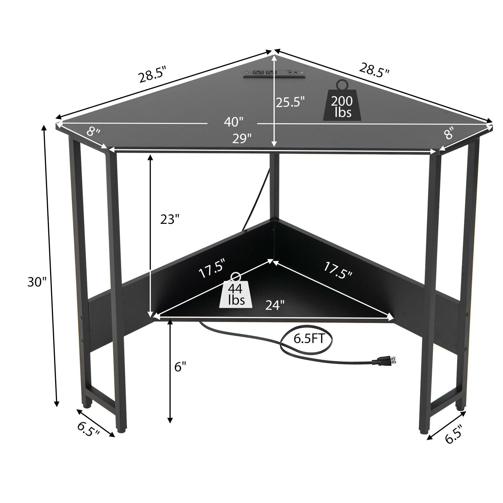 Spacious Desktop with Outlet: This compact corner desk is designed with a roomy tabletop providing ample storage space for your computer equipment office supplies decorations school supplies and more. Furthermore the desktop also has a convenient built-in charging station with 2 DC outlets and 2 USB ports for your electronic devices.