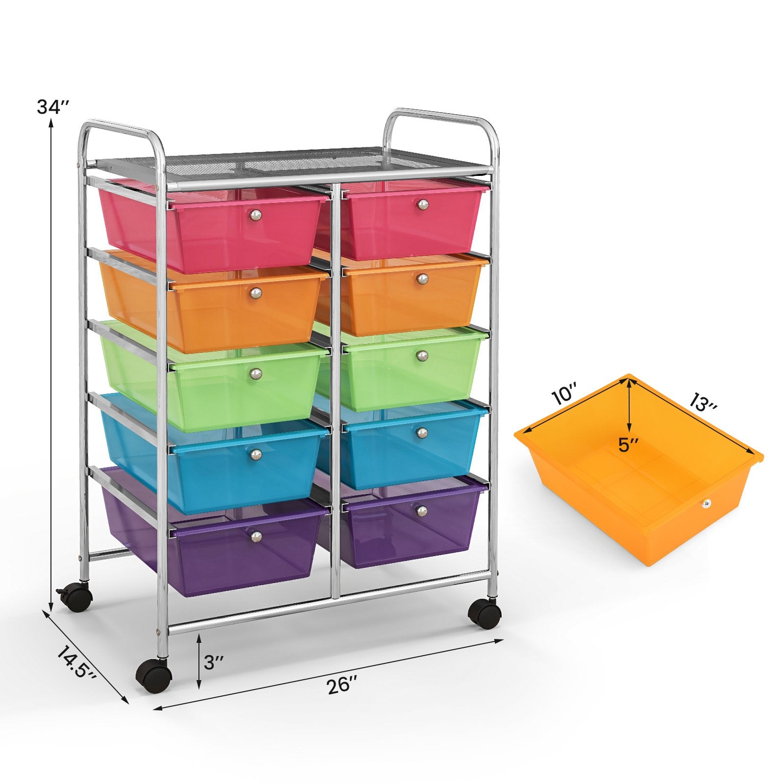 10-Drawer Rolling Storage Cart-Transparent Multicolor