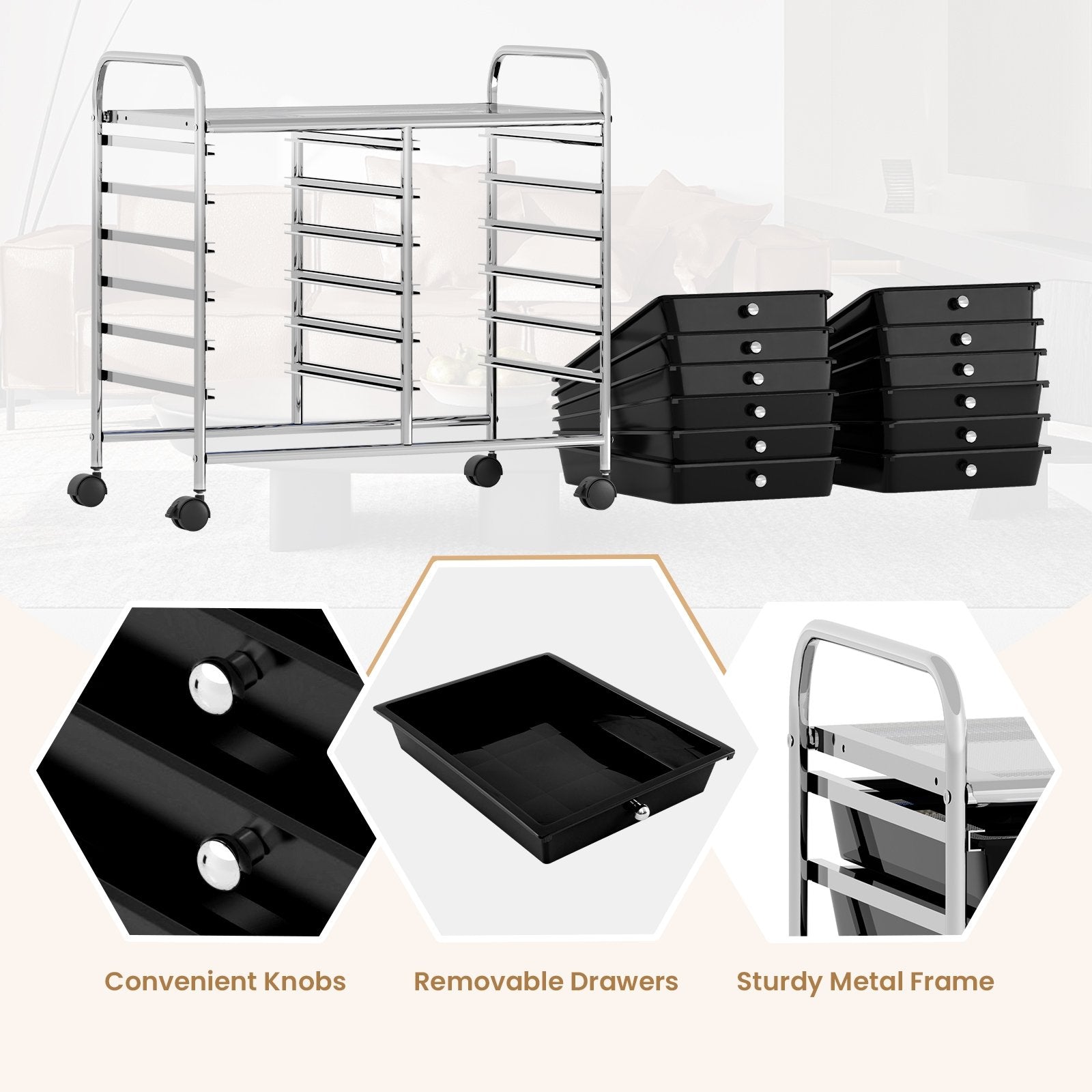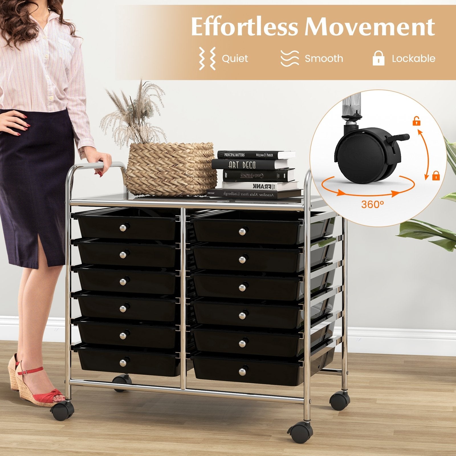 12 Drawers Rolling Storage Cart for Home and Office-Black