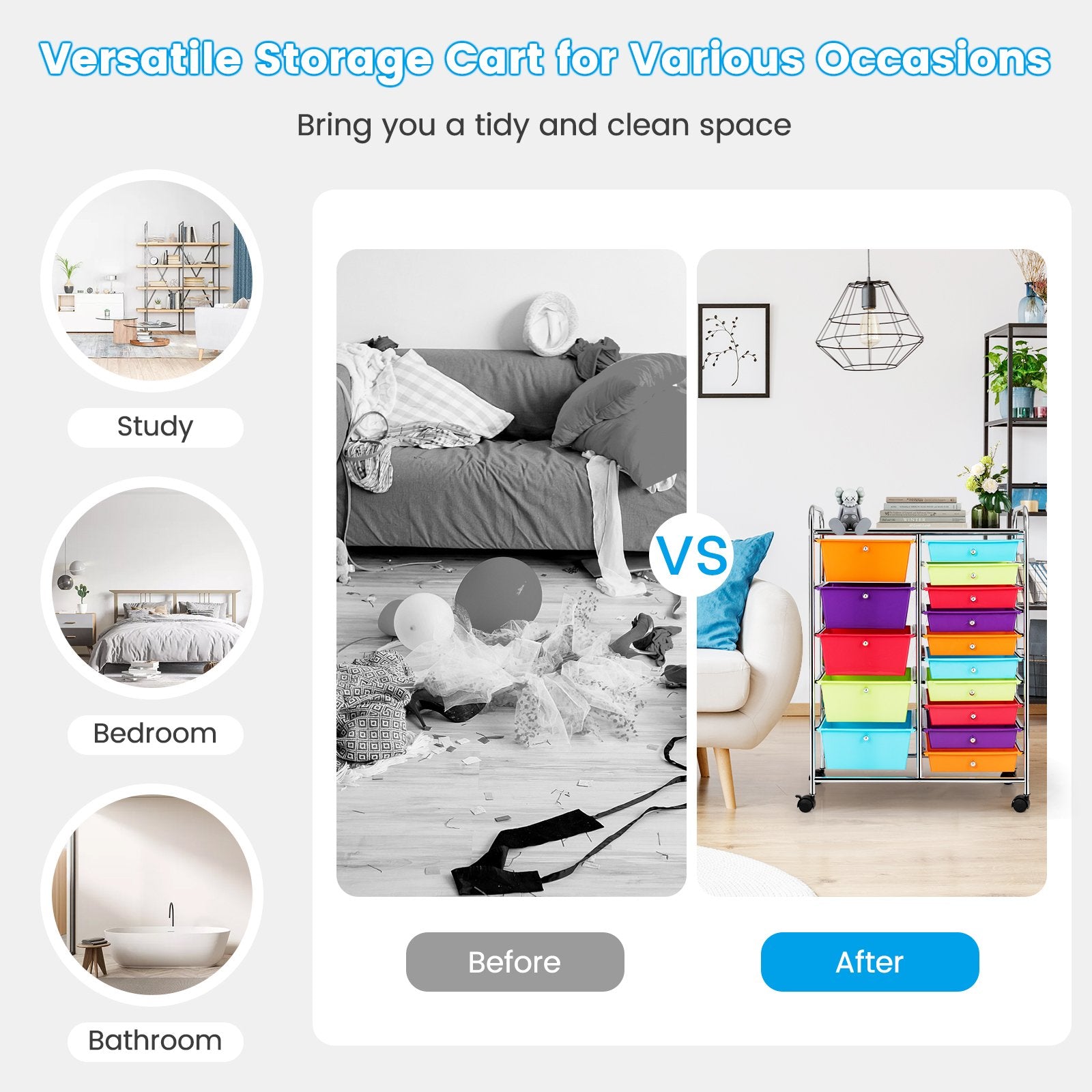 15-Drawer Utility Rolling Organizer Cart Multi-Use Storage-Multicolor