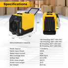 190 PPD Commercial Dehumidifier with Pump and 2 Wheels-Yellow