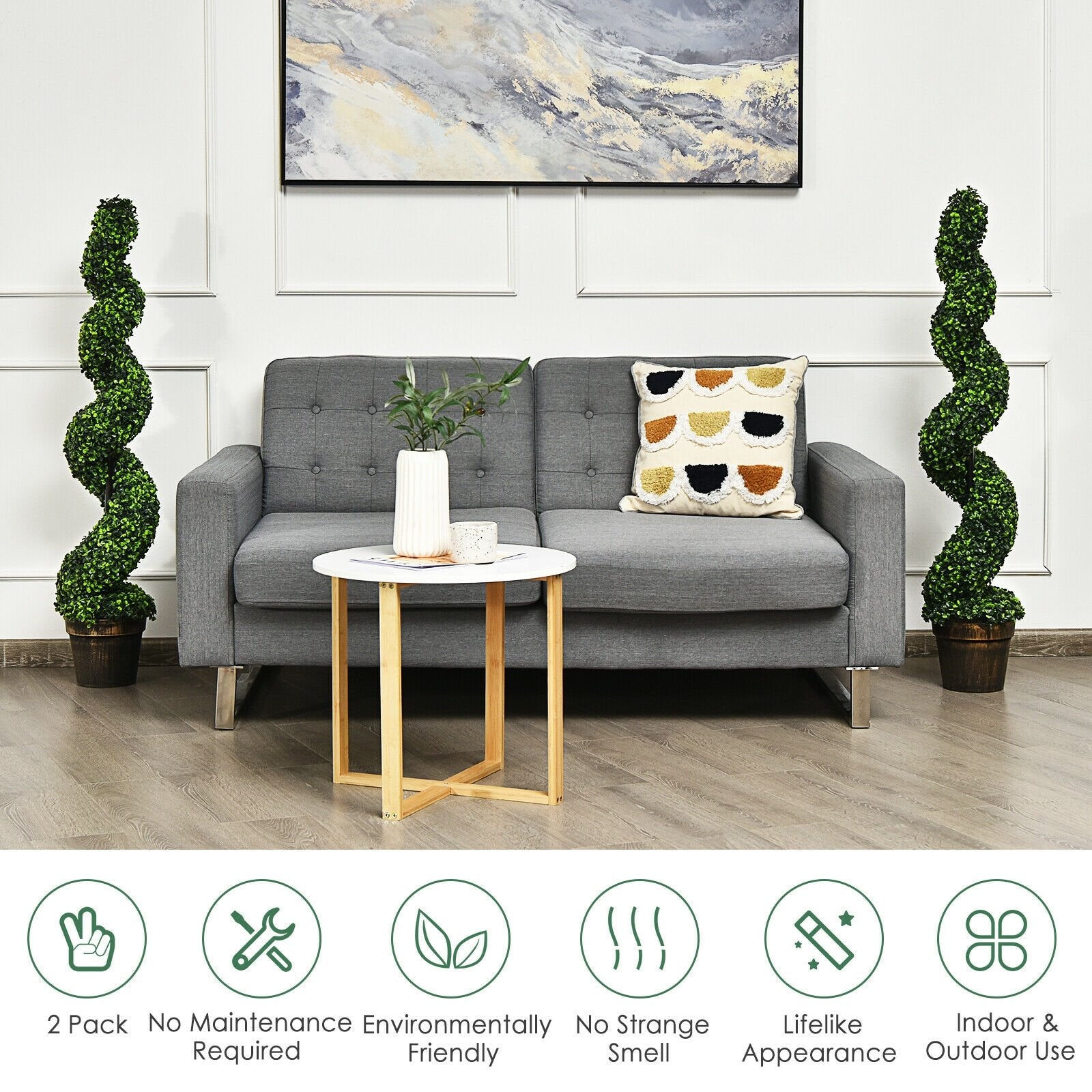 2 Pack 4 Feet Artificial Spiral Boxwood Topiary Indoor Outdoor Decor