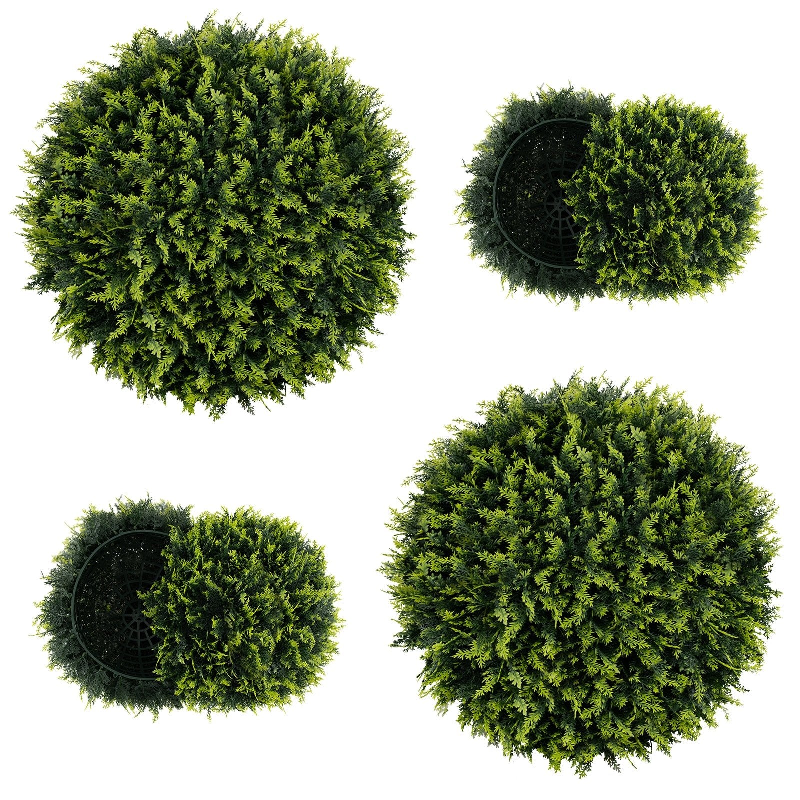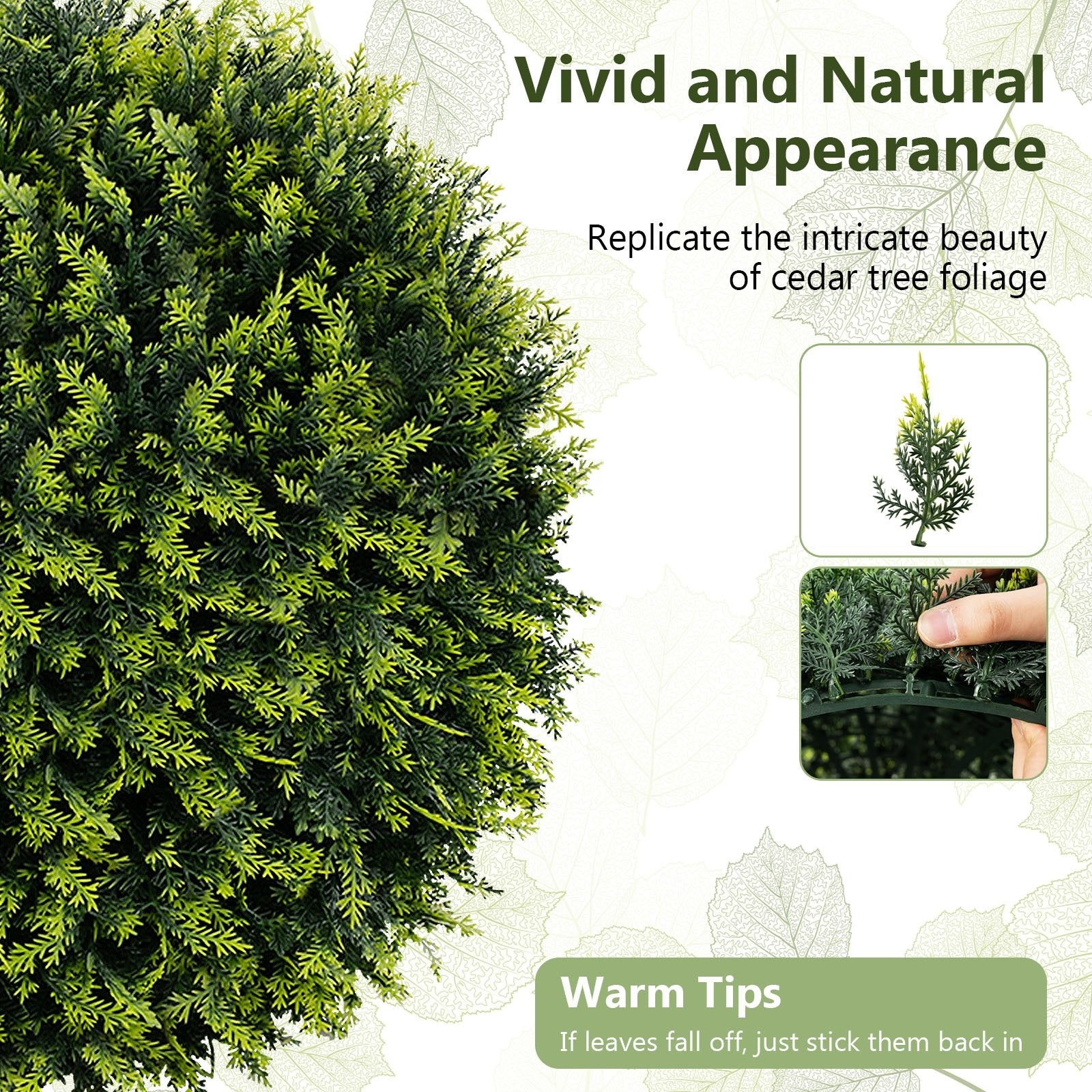 Vivid and Natural Appearance: This artificial plant set includes 2 cedar topiary balls with large sizes measuring 16"/22" in diameter. These meticulously crafted balls imitate cedar tree leaves showcasing dense foliage in varying shades of green for a lifelike and stunning aesthetic.