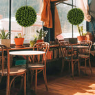 Indoor and Outdoor Decoration: These artificial topiary balls could add a touch of natural charm and sophistication to any space such as living rooms front doors patios gardens offices commercial areas weddings etc. They can be directly placed on the floor on a vase or be hung up (the hanging chains are not included).