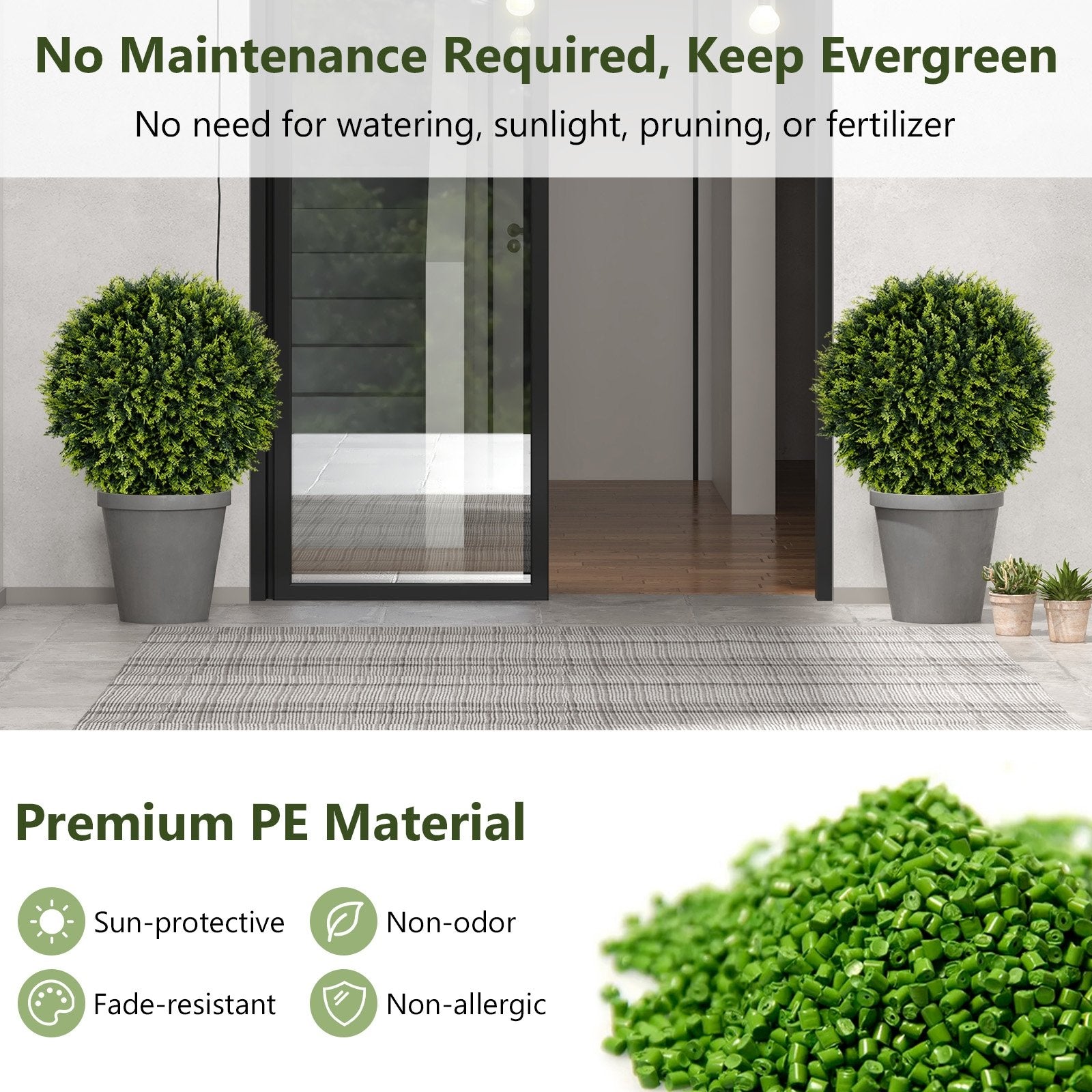 Premium and Maintenance-Free Material: Crafted of premium PE material the artificial boxwood topiary ball is sun-protective fade-resistant non-odor and non-allergic ensuring long-term use. Moreover the faux leaves require no watering trimming sunlight or fertilizer.