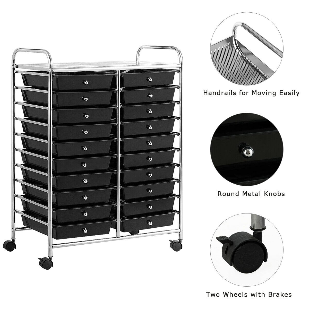 20 Drawers Storage Rolling Cart Studio Organizer-Black
