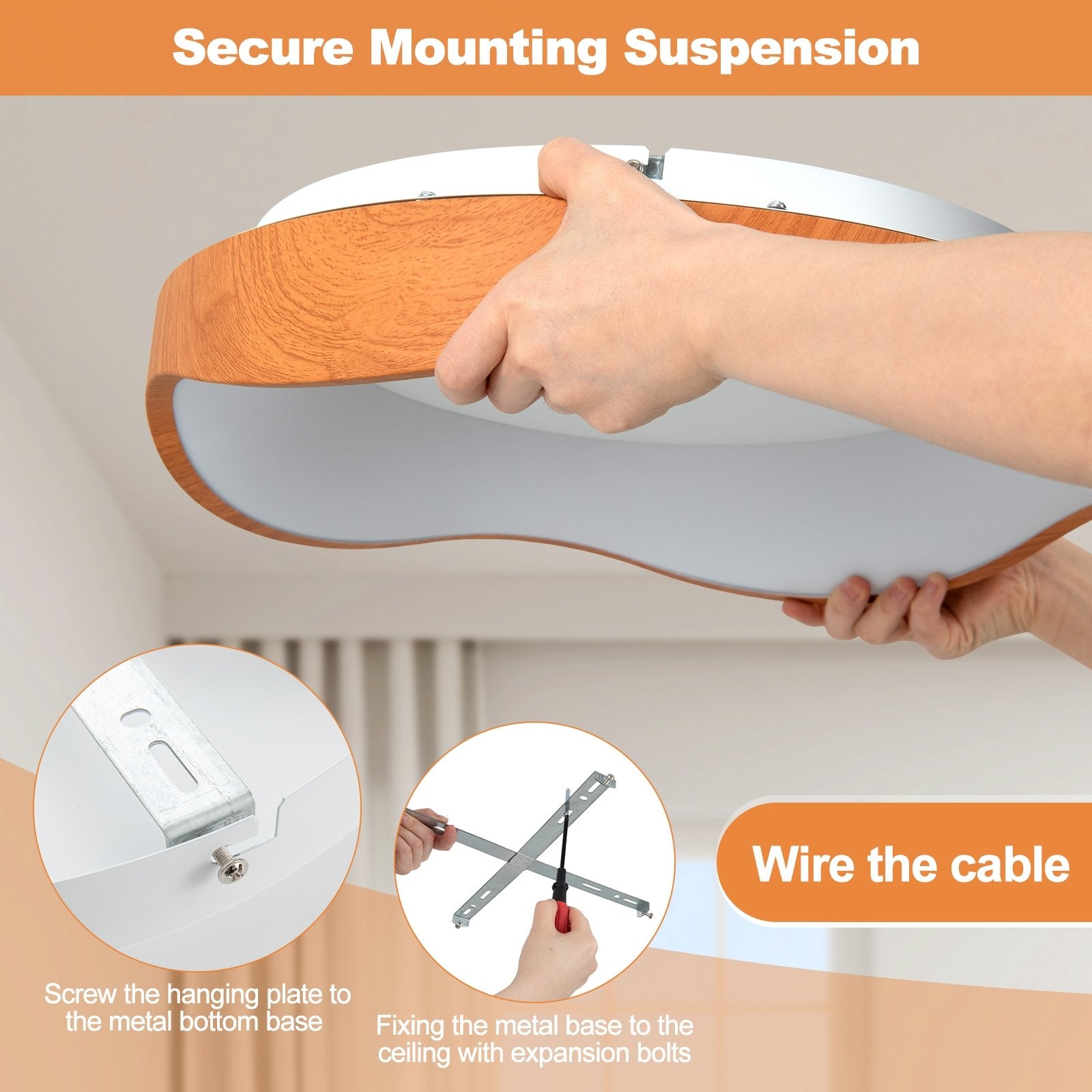 Elegant Design: Featuring an imitation wood pattern and a modern simple design this LED ceiling light not only illuminates your space but also adds a touch of sophistication and style to any indoor decoration.