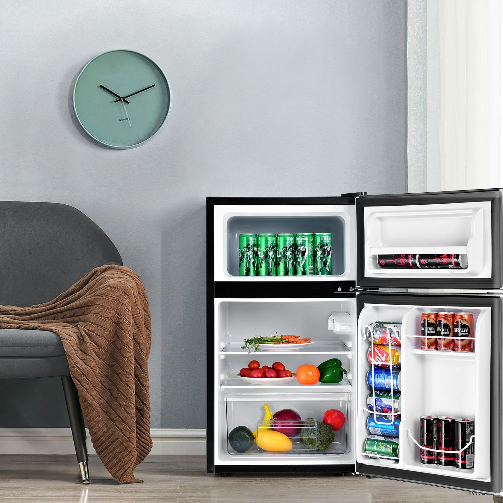 2-Door Design: Large 2.2 cu. ft. fresh food capacity gives you the space to keep foods organized and 1 cu. ft. freezer capacity give you room to store frozen foods. And the two exterior doors allow you to access the freezer or the refrigeration compartment.