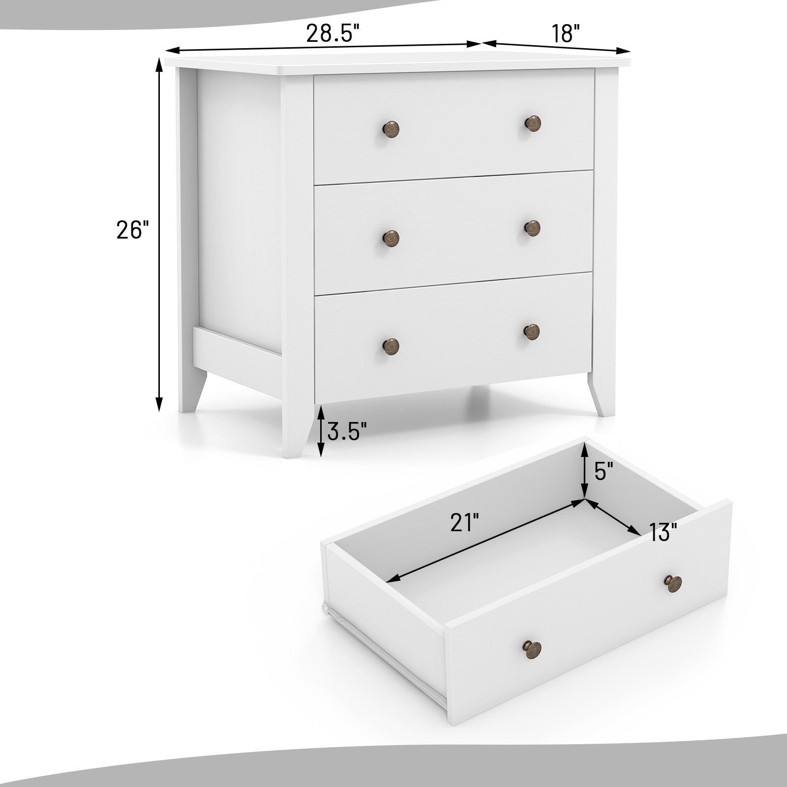 3 Drawer Dresser Chest of Drawers Bedside Table-White