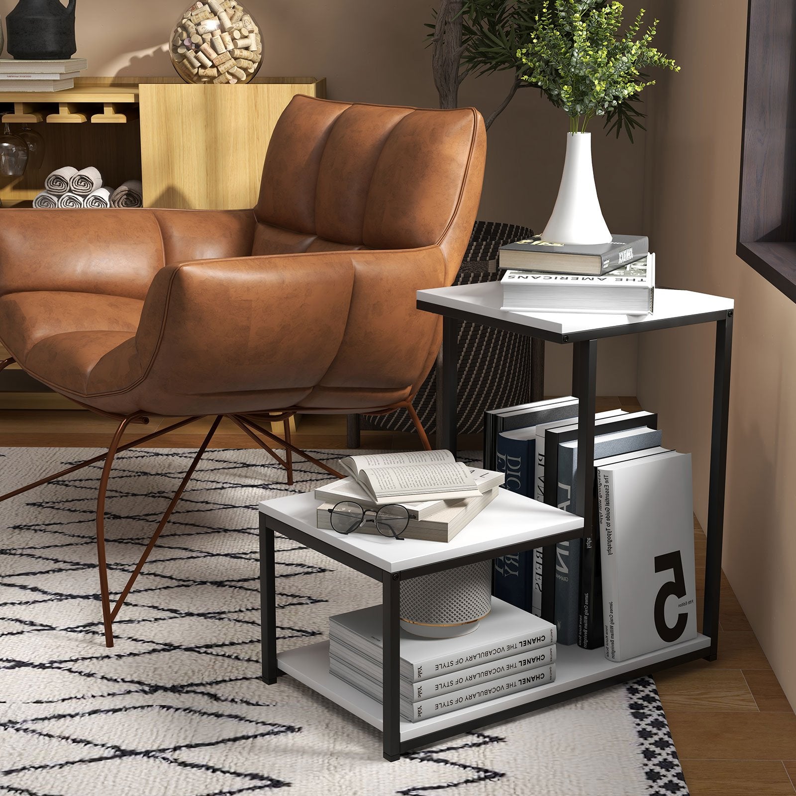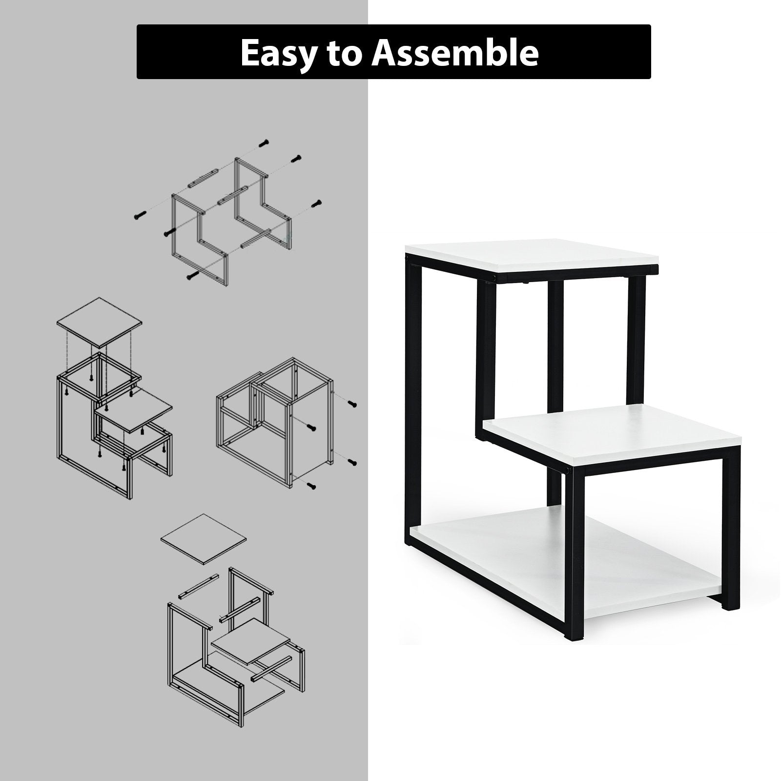- Unique Structure & Industrial Style: Equipped with unique ladder-shaped design our sofa side table can add style to your home. This industrial yet practical end table is always a chic choice for you to keep the small items in great order. White board and black steel tubes can match well with each other making our side table a perfect furniture.