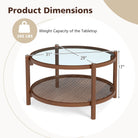 Stylish and Elegant Appearance: With the combination of rustic cherry-colored solid wood hand-woven PE rattan and sleek transparent glass this round coffee table not only adds a touch of class but also complements any room decoration making it a perfect centerpiece.