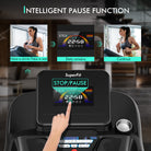 LED Display and Smart Gymax APP: With a multi-functional LED display this cardio training running machine tracks the data of time calories distance heart rate and steps. And all the data will remain if you short-press the "PAUSE" button. Apart from it the smart Gymax APP can also keep your exercise data. All you need to do is connect your phone to this treadmill through Bluetooth (EsangAudio V2).