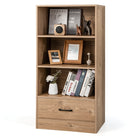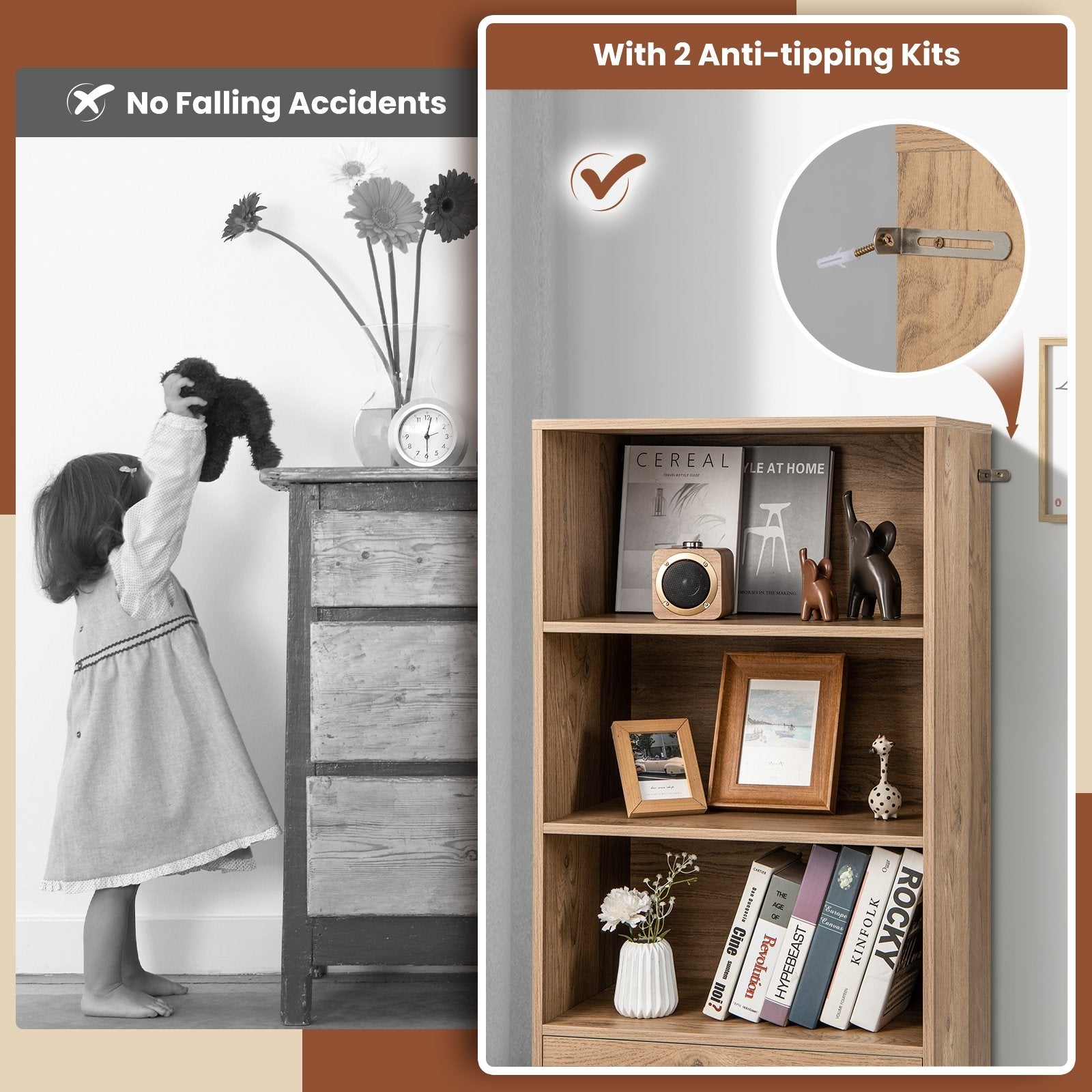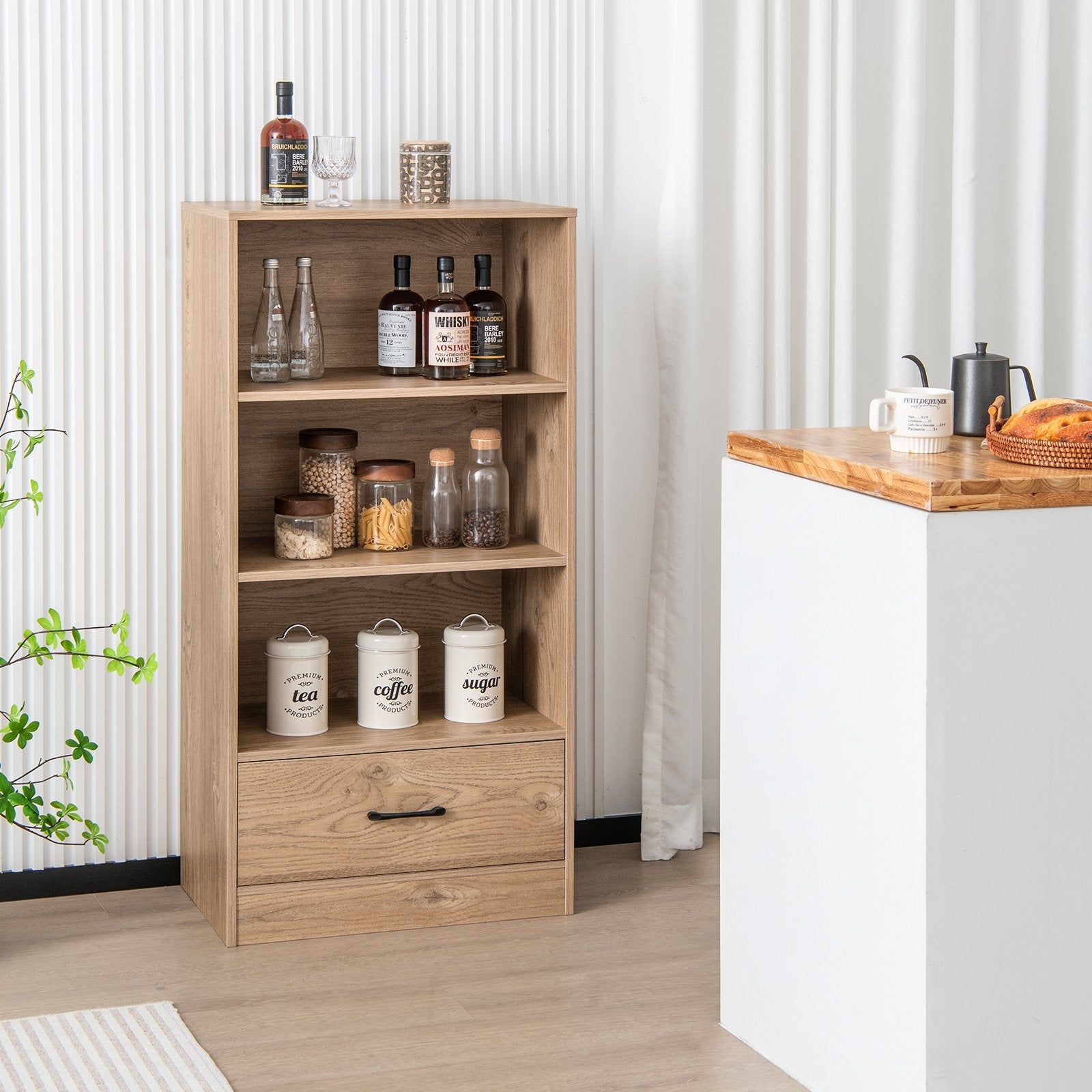 4-Tier Storage Bookcase with Open Shelves Drawer and Anti-toppling Device-Natural