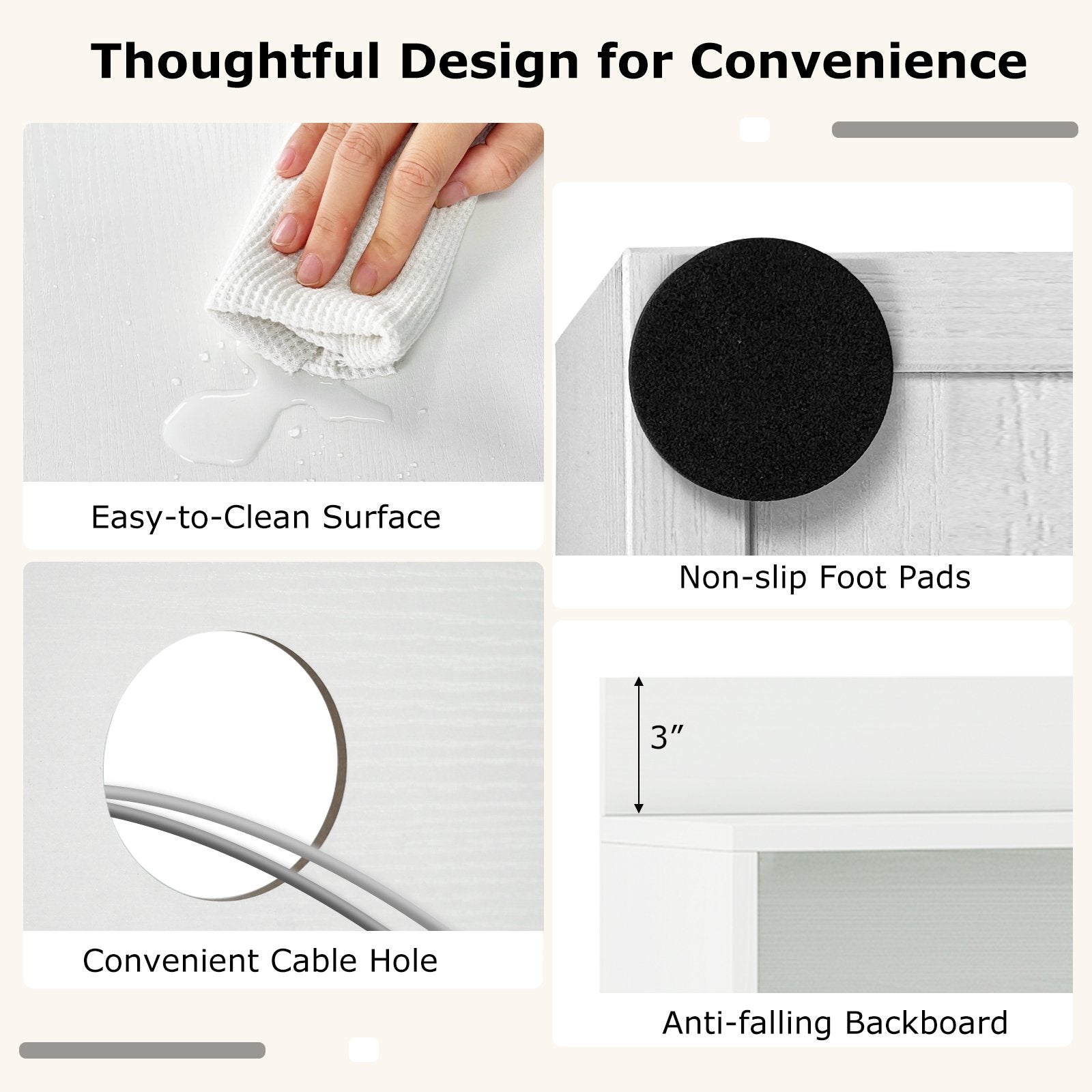 - -Cable management hole to keep diverse wires organized