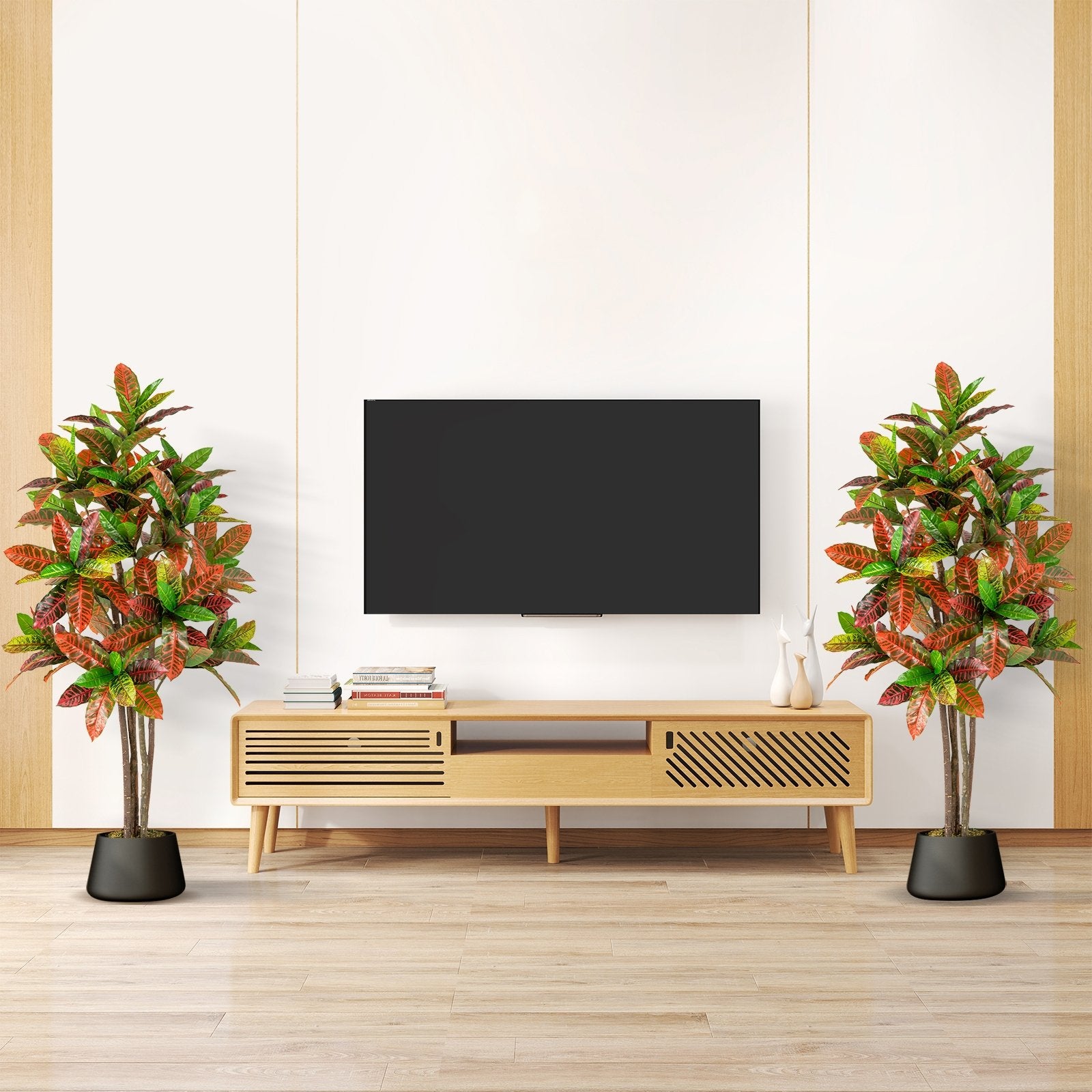 5 FT Tall Artificial Croton Plant with Gradient Leaves and Nursery Pot-1 Peice