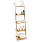 5-Tier Ladder Shelf Modern Bamboo Leaning Bookshelf Ladder Bookcase