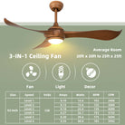 3-IN-1 Ceiling Fan with Remote: This 52-inch modern ceiling fan combines three functions----fan light and decor making your life simpler and more elegant. With remote control you can easily turn on/off the fan or light adjust fan speed set a timer and switch color temperature without standing up.