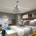 52 Inches Ceiling Fan with Wooden Blades and Remote Control-Silver