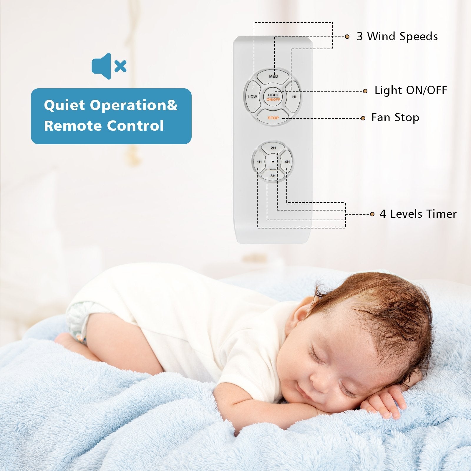 3 Wind Speeds and Timer Function: Equipped with low medium and high wind speeds this 52" ceiling fan can be adjusted easily to provide optional comfort. What's more the timer function is designed for humanized experience so that you can choose 1H 2H 4H or 8H to meet your different needs.
