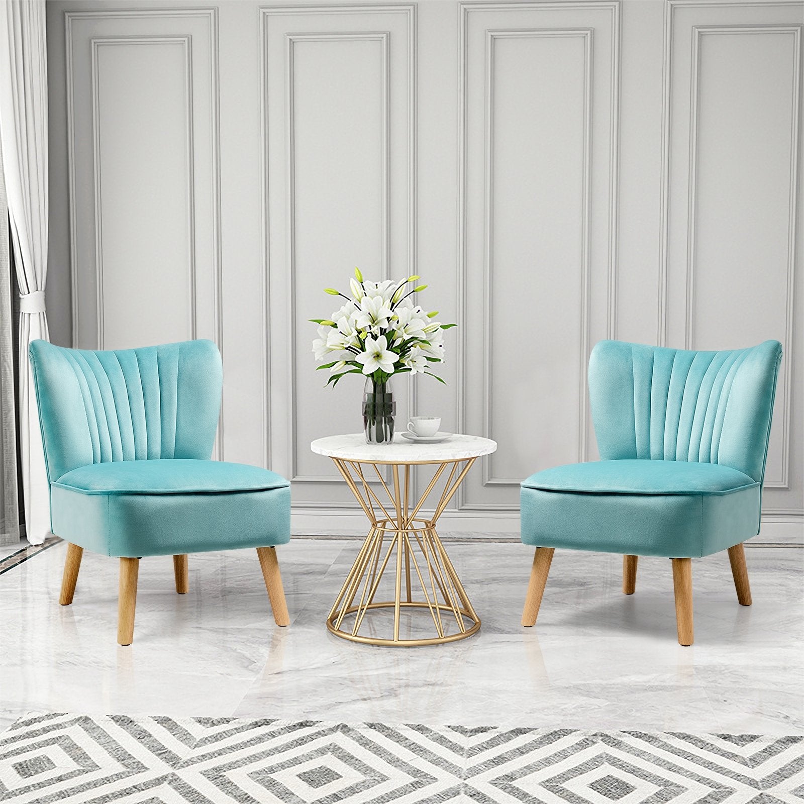 Modern Armless Velvet Accent Chair with Wood Legs-Green