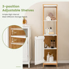 Ideal Storage Solution for Small Spaces: This narrow bathroom floor cabinet occupies limited floor area and creates ample storage space which makes it suitable for small bathrooms and more. Product dimension: 12" x 12" x 51"(L x W x H).
