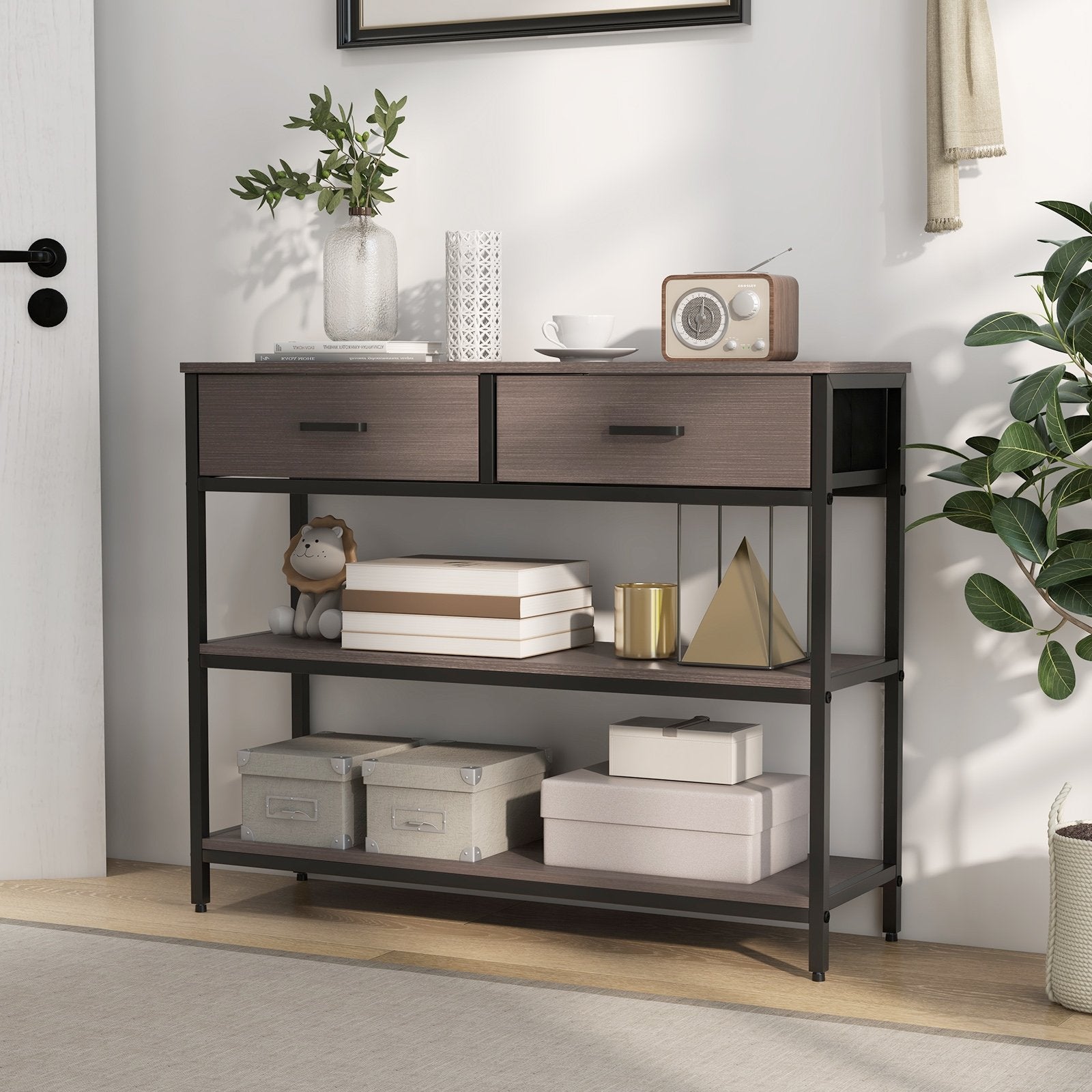 Open Storage and Compact Size: Fully utilize the 40" x 12" (L x W) tabletop and your precious collections of books or artworks will be neatly displayed. Also the console table contains 2 open shelves of 39" x 12" (L x W) acting as storage in addition to keeping sundries tidy. Thoughtfully its overall size of 40" x 12" x 32" (L x W x H) is compact to match any narrow corner in a living room entryway bedroom etc.