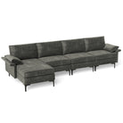 The soft upholstery is made of skin-friendly lint fabric with soft touch and gloss which is not easy to deform fade or wrinkle. / skin-friendly linen fabric with softness warmth breathability and fabric absorption. And the high-density sponge filling and elastic spring system upgrade the comfortable level. This modern living room sofa couch comes with 4 boxes and may be delivered on different days. Once assembled it is stable and has a total weight capacity of 2640 lbs. The stable metal legs also make the couch stable and sturdy with non-scratch foot pads to protect your floors. In addition reaching your hands into the gap of the back and seat cushion you can feel hidden storage boxes down there.