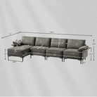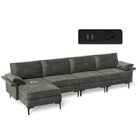 Extra Large L-shaped Sectional Sofa with Reversible Chaise and 2 USB Ports for 4-5 People-Gray
