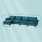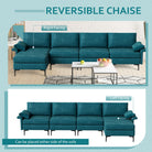 Extra Large L-shaped Sectional Sofa with Reversible Chaise and 2 USB Ports for 4-5 People-Peacock Blue