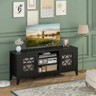 Farmhouse TV Stand for TVs Up to 65 Inches 4 Adjustable Shelves-Black