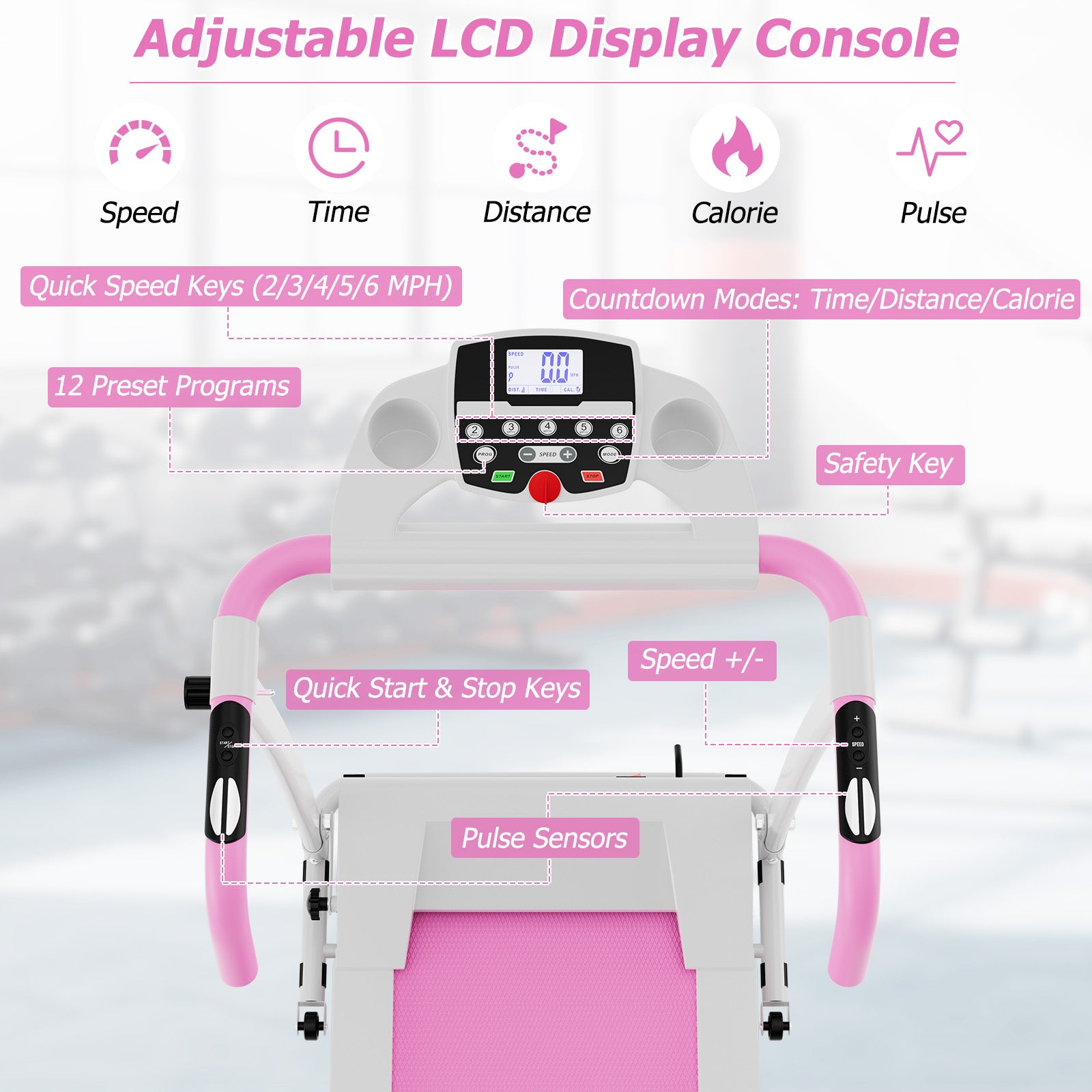 Folding Treadmill with 12 Preset Programs and LCD Display-White