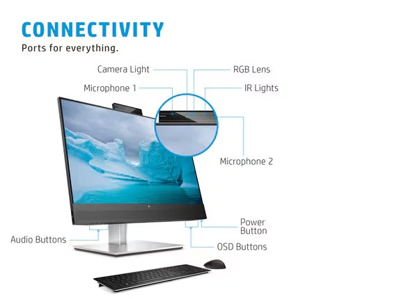 ​The HP E24mv G4 FHD Conferencing Monitor features a 23.8-inch Full HD display with an integrated 5MP pop-up webcam, delivering exceptional video quality and seamless communication for gamers and work-from-home professionals.