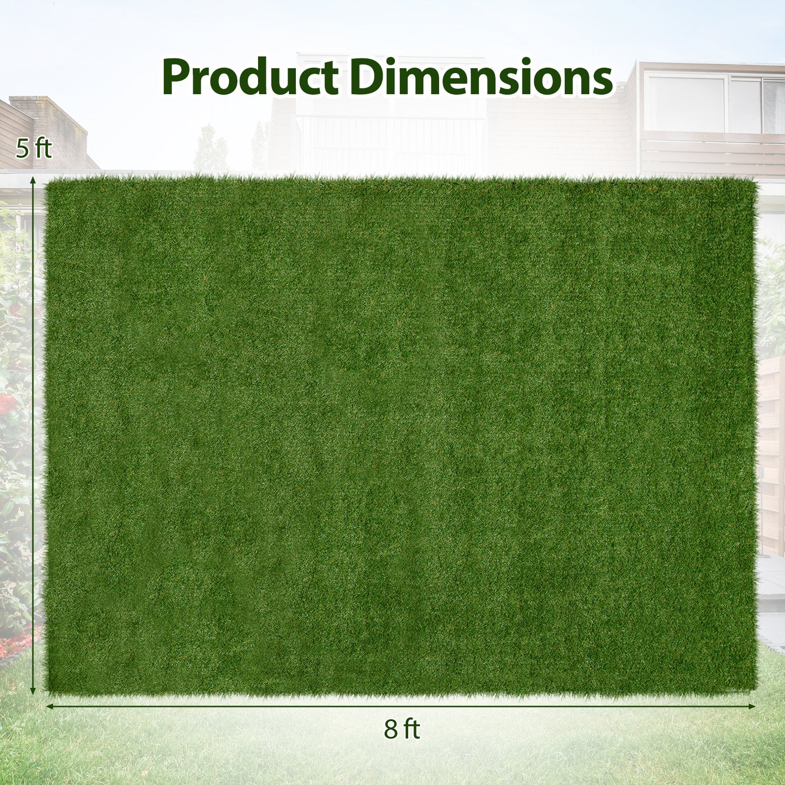 Natural and Realistic Appearance: This 4 x 6 FT/125 x 185 CM 5 x 8 FT/155 x 245 CM 6 x 10 FT/185 x 305 CM artificial grass turf features a lush 1.4"/35 mm pile height a total weight of 60 oz per square yard and 25200 high density. Moreover the turf features straight and curved grasses complemented with various shades of green creating an authentic and vibrant look to your living space.